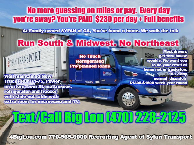 Since 1984, Glenn "Big Lou" Tocci of Tocci & Assoc, Inc has been helping recruit experienced Tractor Trailer Co. drivers, O/O & trainees for the transportation industry. 4BigLou.com 4adrivingjob.com